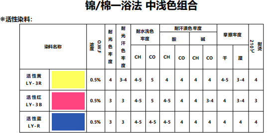 該組合系列及工藝完全可以達(dá)到兩浴法染色的牢度
